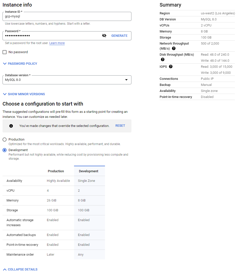 * Set the Database Type to "GCP Postgres" if using PostgresSQL or "GCP MySQL" if using MySQL. (In this example, we are using GCP Postgres.)